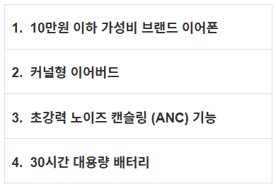블루투스 이어폰 추천 목차