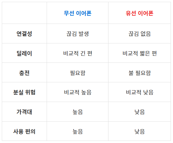무선 이어폰과 유선 이어폰의